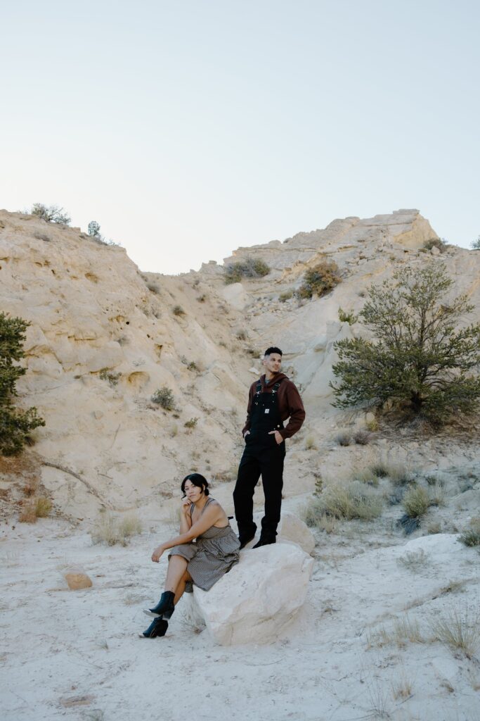 We met at a beautiful outdoor location just north of Albuquerque, where the landscape showcases classic New Mexico scenery: desert textures, warm evening light, and wide-open skies.