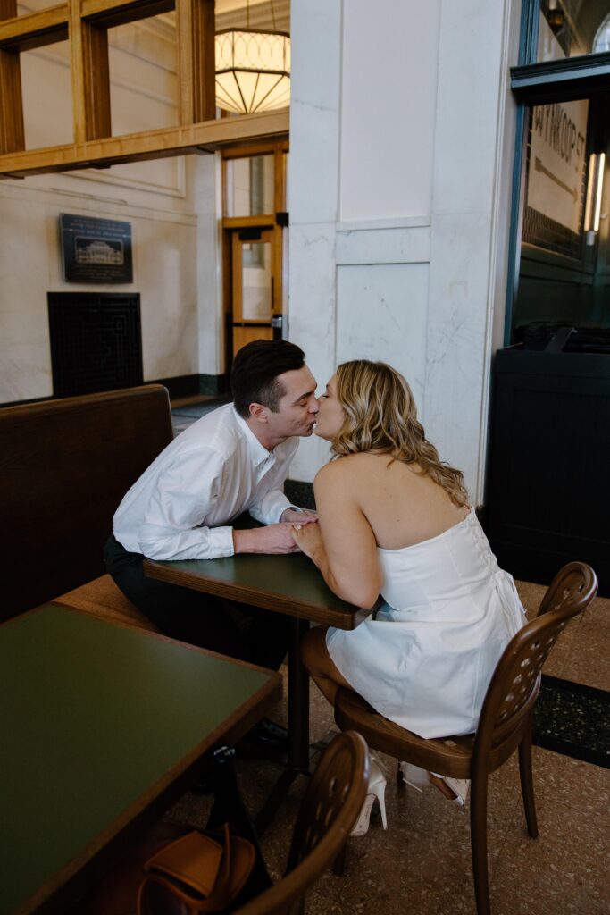 Union Station wasn’t just a beautiful backdrop; it’s also woven into one of the most important moments of their relationship. On the way to dinner, J surprised M by proposing on a nearby bridge that led to the park where they first met, playing kickball.